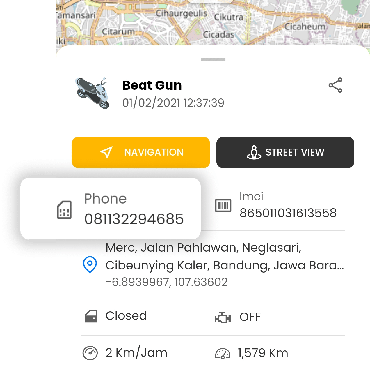 - Pada halaman informasi kendaraan anda, silahkan cek nomor GSM untuk melakukan sadap suara