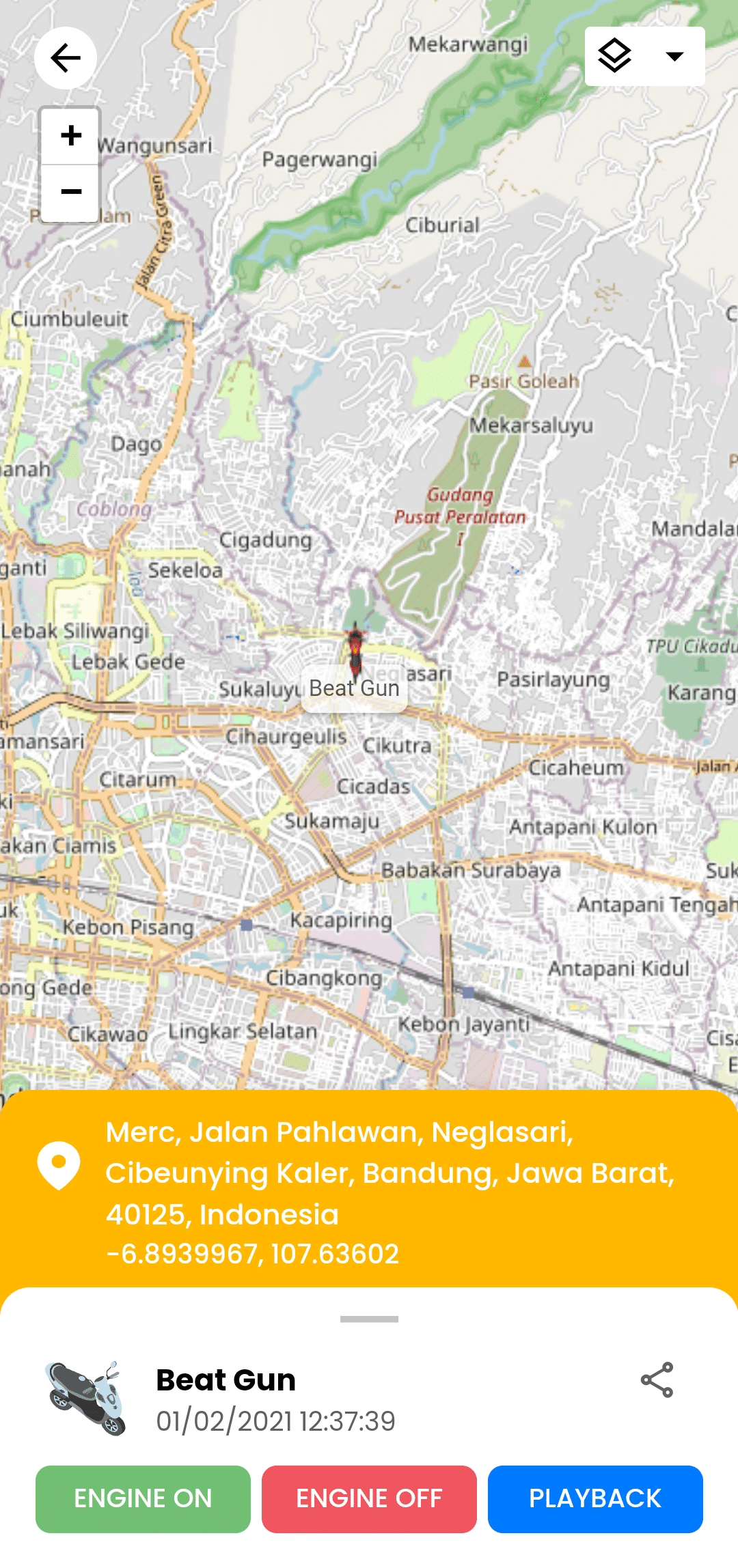 - Pada halaman Tracker Daftar Kendaraan, silahkan pilih bagian nopol kendaraan yang ingin di lacak